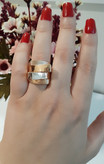 متاسفانه این کالا در حال حاضر موجود نیست. میتوانید از طریق لیست بالای صفحه، از محصولات مشابه این کالا دیدن نمایید.جنس پایه از مس و آبکاری طلای ۱۸عیار رنگ ثابت و ضدحساسیت از برند ژوپینگ سایز۷،۸،۹