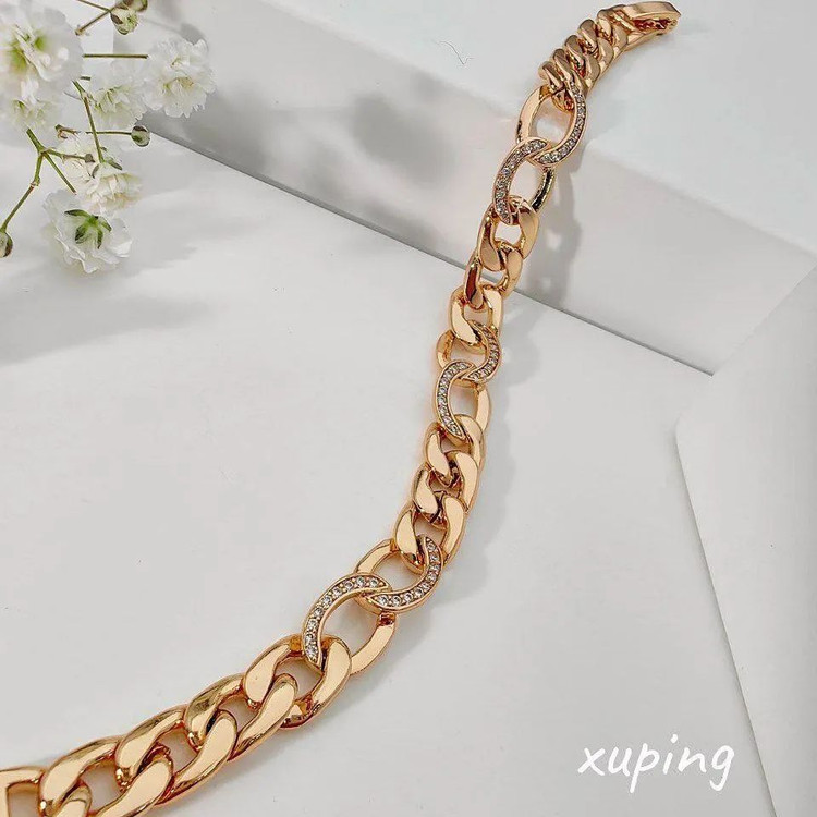 دستبند زیبای ژوپینگ جنس پایه از مس و آبکاری طلای ۱۸عیار رنگ ثابت و ضدحساسیت نگینها مخراج کاری شده و ریزش ندارند